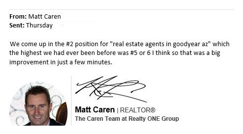 top Realtors of Goodyear and Litchfield Park, AZ:"When we get those calls, there's no competition. People see we're ranking #1 on Google and Yelp, they've already decided to work with us".